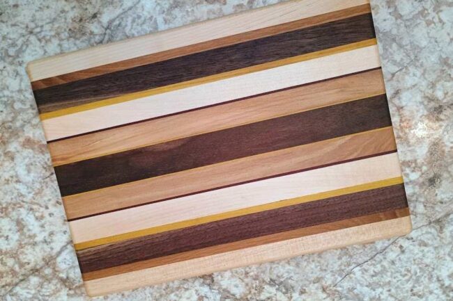 $75.00Cutting Board- Size-9.5 x 13. Walnut, maple, osage orange, purple heart, white oak. Comes with care instructions and extra bees wax/mineral oil blend paste. Free shipping in continental US.