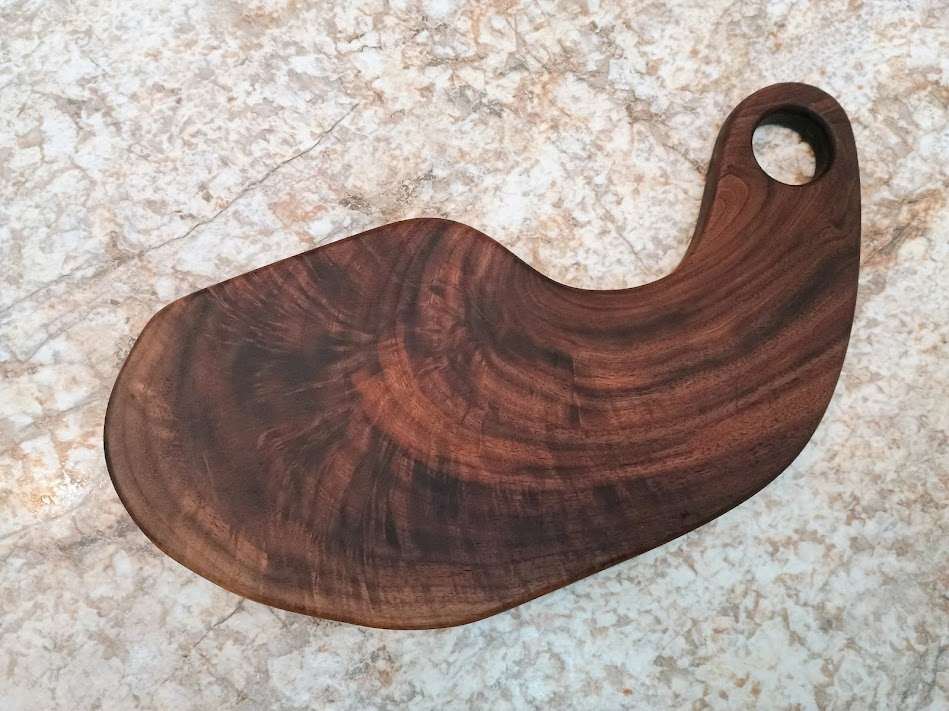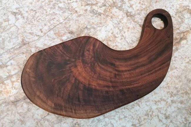 Cutting/Charcuterie Board- Chaos Pattern. Size-6 1/2 x 14 x1. Walnut burl pattern. Comes with care instructions and extra bees wax/mineral oil blend paste. Free shipping in continental US.